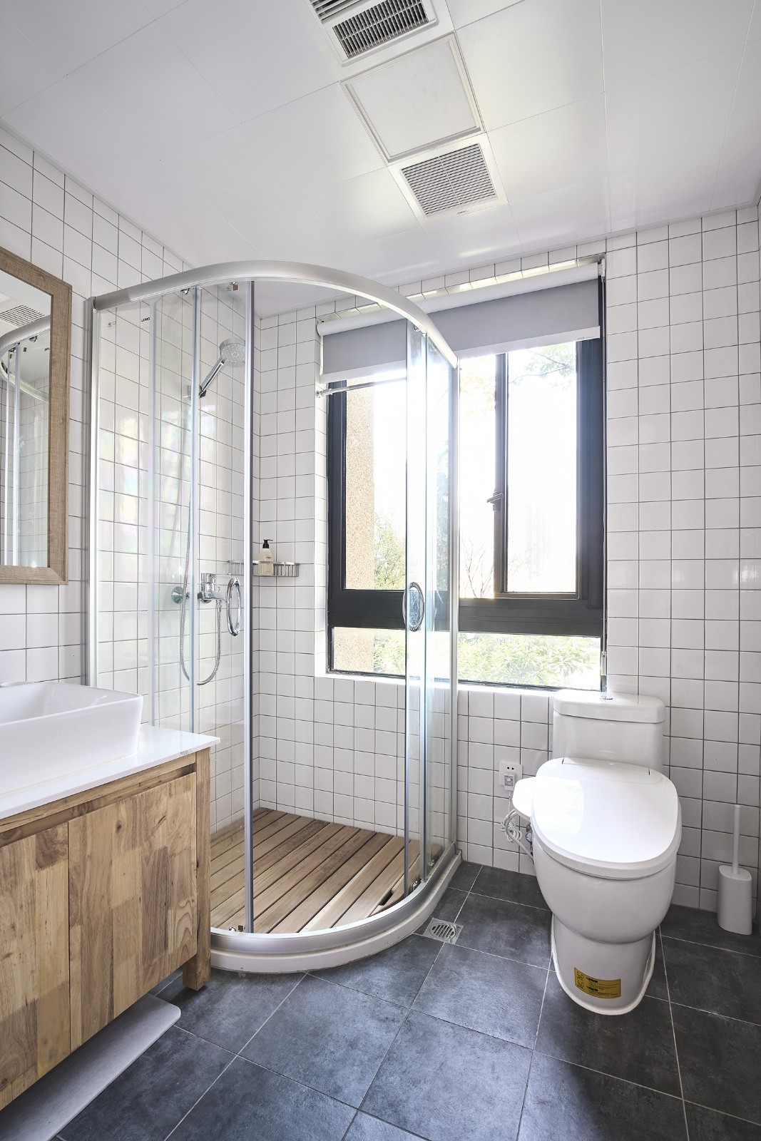 日式小清新風,小白磚營造復古潮流,木色元素增添自然氣息。干濕分離,整潔易打理。